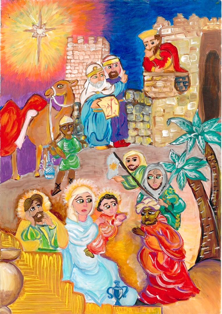 С пожелания за изпълнени с Вяра, Надежда и Любов сърца и да сте неуморни в щедрото изявяване на доброто начало у вас! Нека всяка помисъл и всяко дело да свидетелство за родения в душата ви Христос и да пребъдва във вас светлината! С благодарност към Вяра Пенчева за прекрасната рисунка "Рождество Христово", чрез която добрият Бог благославя цялото човечество! Екип на Творческа къща "Щъркелите" и ПАСТЕЛКО - виртуална галерия за детско и младежко творчество