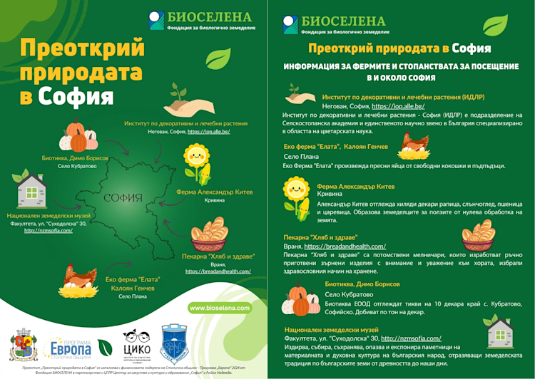 „Преоткрий природата в София“ е нов проект на Фондация БИОСЕЛЕНА, който запознава децата със земеделието и е насочен към тяхното екологичното възпитание, засилване на връзката им с природата и отношение към здравословния начин на живот. Фондацията от години работи по проблемите на устойчивия начин на живот като популяризира устойчивото производство на храни, здравословно хранене, опазване на природната среда. Нейните усилия са насочени към изграждане на здравословни навици в най-малките, да им разкрие какво е обич към природата и земеделския труд. Един от първите й проекти бе детската биоферма „Слънчева градина“ край Пловдив.