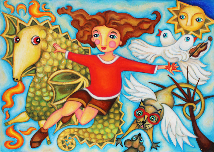 Публикувана отВладимир Добревпреди годинаНов златен медал бе присъден на Вяра Пенчева, 14 г., гр. Габрово от Фондация "Малък зограф" в Световния конкурс за детска рисунка, 2024 г. Всяка година в конкурса участват около 7000 рисунки от над 60 страни по целия свят. Председател на журито бе проф. Анна Бояджиева, преподавател в НХА. През 2024 г. децата имаха възможност да творят върху две теми: „Природните чудеса в моята страна“ и „Артистична експедиция: въображаемо пътешествие“. Вяра избра втората тема и нарисува вълшебна картина, изобразяваща полета на нейното въображение.