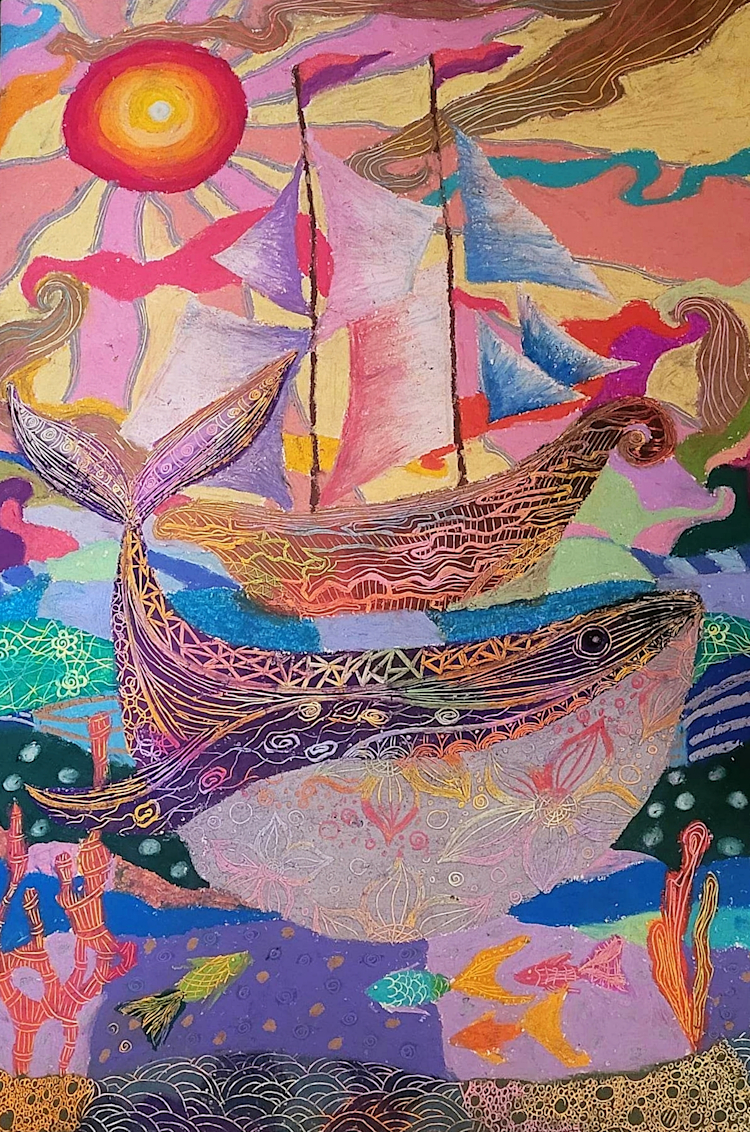 Публикувана отВладимир Добревпреди годинаСтихотворението "Аз обичам морето" от Виктор Колев, 9 г. е отличено с поощрителна награда в Международния конкурс "Имаш само това, което си дал" през 2024. Написано е по рисунката "Море" на Васил Пантелеев, 10 г., Рисувалня "Елфина", Бургас. Виктор Колев е възпитаник на Валентина Димова от клуб „Светлини сред сенките“, гр. Казанлък. Той е задочен участник, от близко до града населено място - с. Енина. Виктор е част от клуб „Светлини сред сенките” само от година, но вече има няколко престижни награди от Национални конкурси за рисунка, поезия и проза. Изключително интелигентно и любознателно дете, той пише на много високо за възрастта си ниво. Обича да рисува и има разпознаваем стил. Твори на всяко възможно място, включително и когато е в заведение или е излязъл да поиграе.