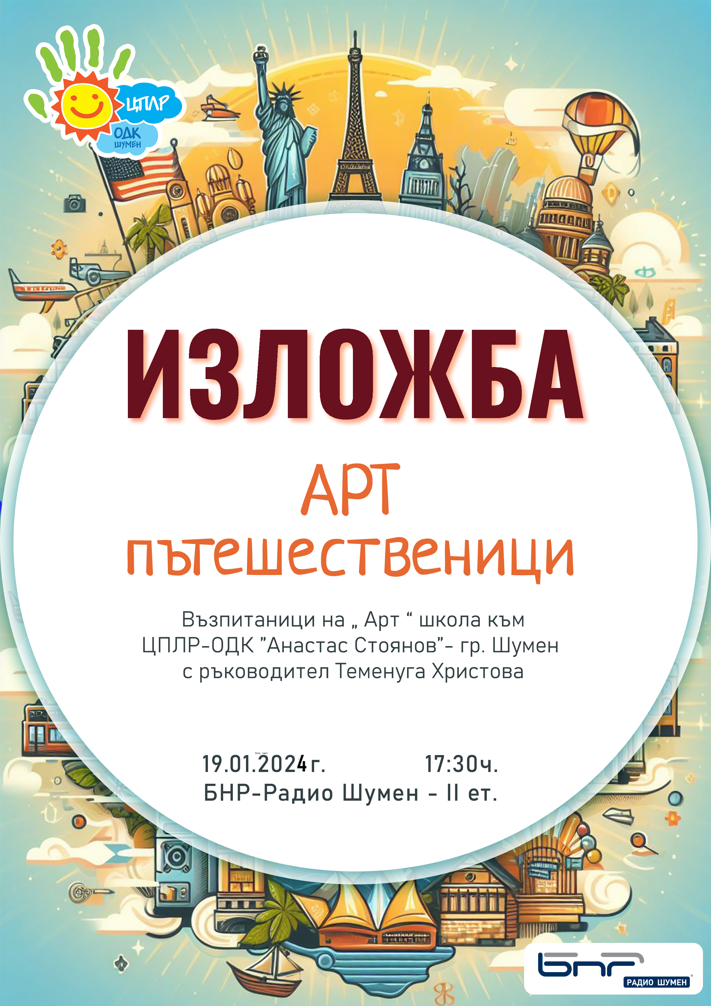 Публикувана отВладимир Добревпреди годинаОт 26-ти до 30-ти юни ЦПЛР-ОДК "Анастас Стоянов" Шумен бе домакин на летен младежки пленер под надслов "Мостове на приятелството" (1 част). В пленера участваха 12 възпитаници на "Арт" школа с ръководител Теменуга Христова и 12 ученици от гимназия "Николае Лабис", Букурещ с ръководител Ана-Мария Маргине. Всички талантливи участници са на възраст 12-15 години и са носители на престижни регионални, национални и международни отличия от конкурси, изложби и фестивали в областта на изобразителното изкуство.