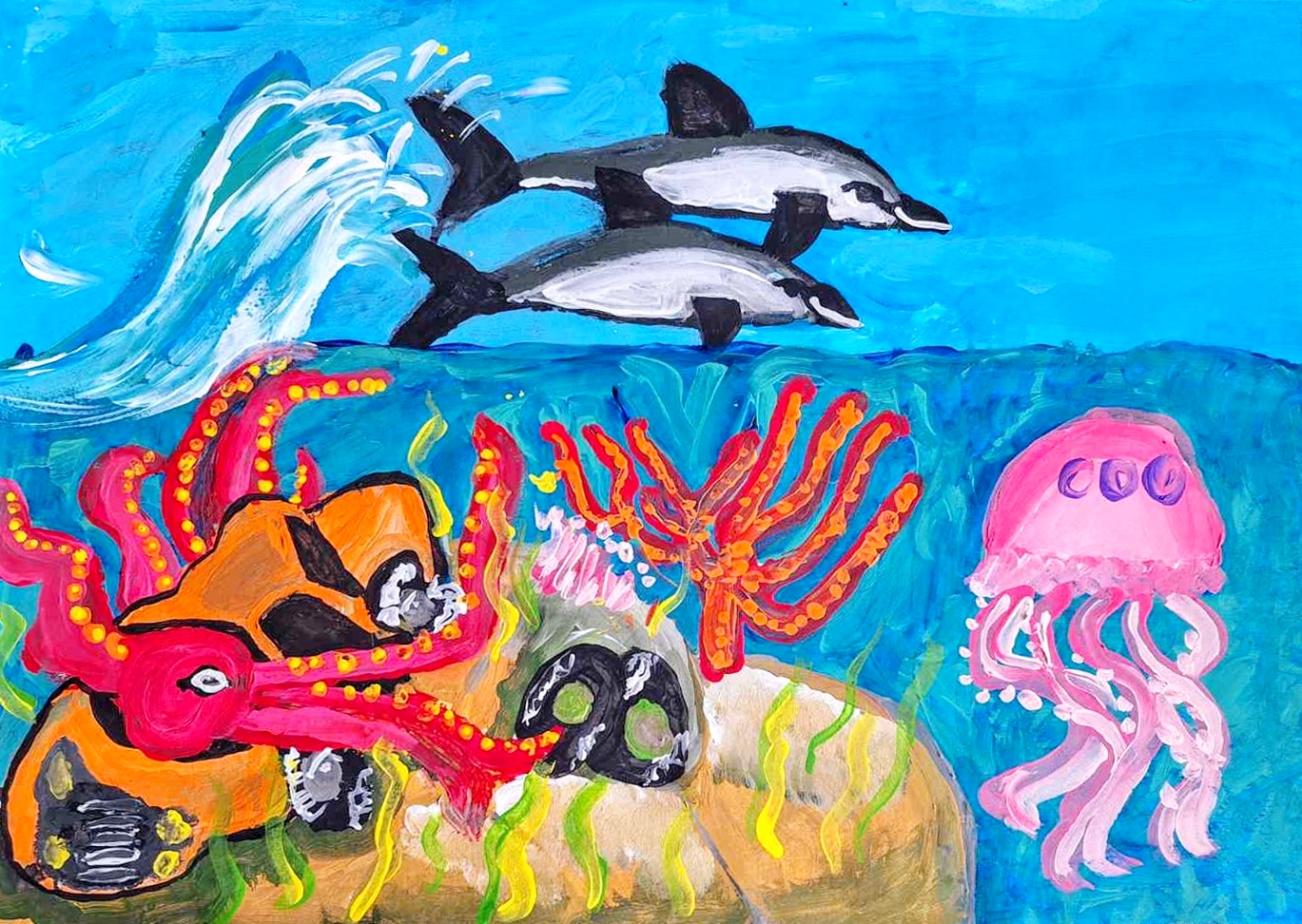 Публикувана отВладимир Добревпреди годинаСтихотворението "Аз обичам морето" от Виктор Колев, 9 г. е отличено с поощрителна награда в Международния конкурс "Имаш само това, което си дал" през 2024. Написано е по рисунката "Море" на Васил Пантелеев, 10 г., Рисувалня "Елфина", Бургас. Виктор Колев е възпитаник на Валентина Димова от клуб „Светлини сред сенките“, гр. Казанлък. Той е задочен участник, от близко до града населено място - с. Енина. Виктор е част от клуб „Светлини сред сенките” само от година, но вече има няколко престижни награди от Национални конкурси за рисунка, поезия и проза. Изключително интелигентно и любознателно дете, той пише на много високо за възрастта си ниво. Обича да рисува и има разпознаваем стил. Твори на всяко възможно място, включително и когато е в заведение или е излязъл да поиграе.