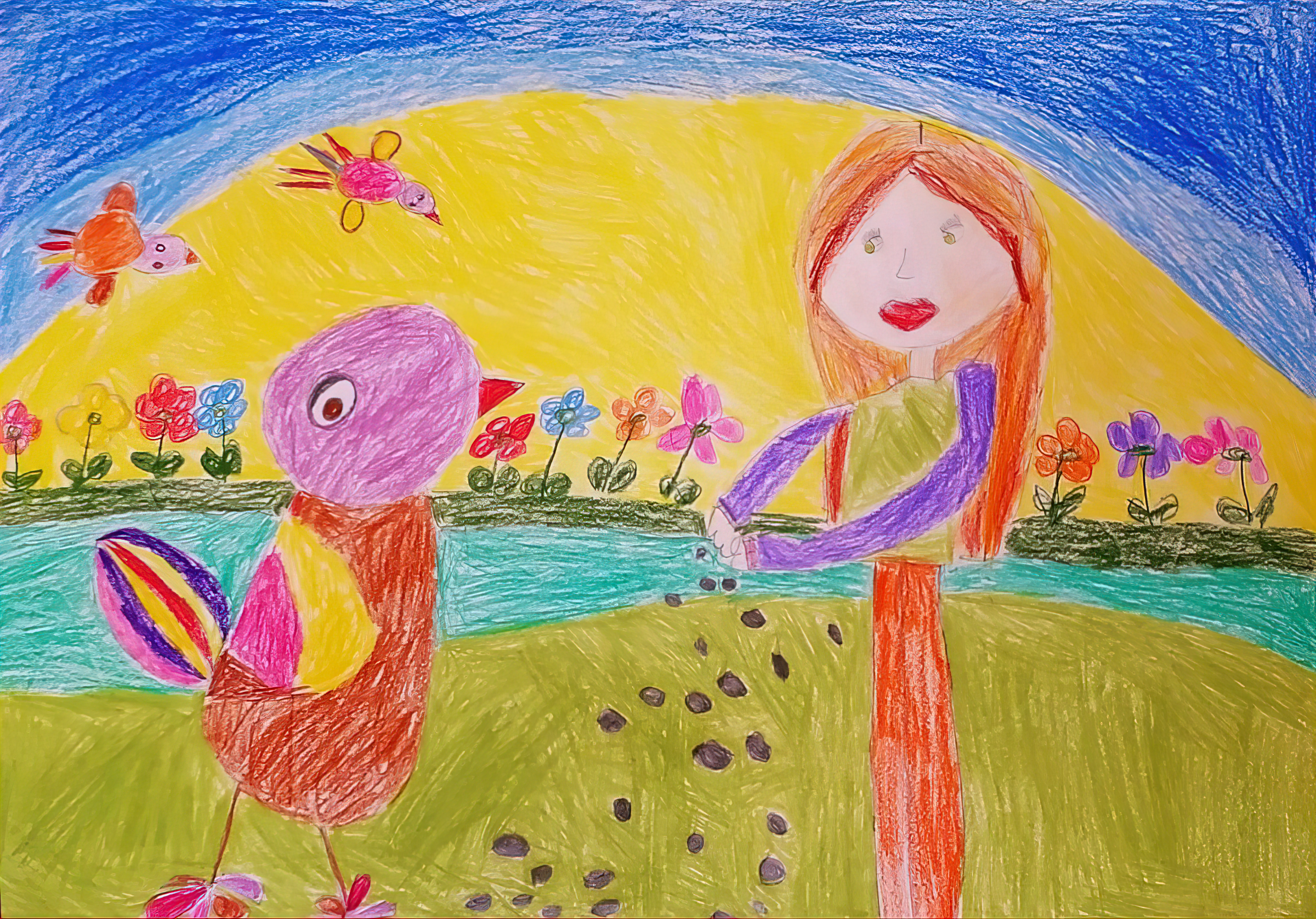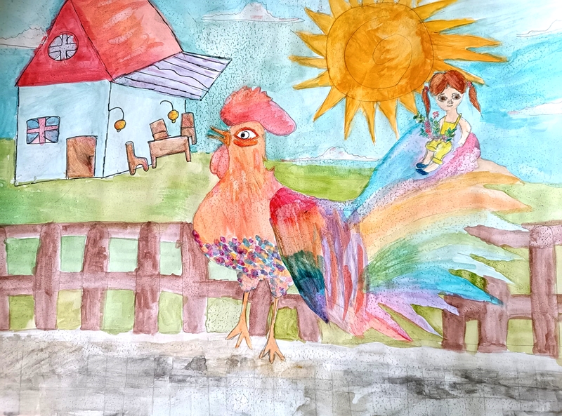Публикувана отВладимир Добревпреди 2 години"Вики и шареното петле". Приказка от Пресияна Проданова,10 г., ШИИ “100 усмивки“ при НЧ “Обнова 1923“, кв. Ветрен, гр. Бургас. Р-л: Атанаска Желязова. Творбата е отличена на трето място в Международния конкурс "Новите приказни герои" на Детско онлайн издание "Щъркел" и Галерия ПАСТЕЛКО - за детско и младежко творчество.
