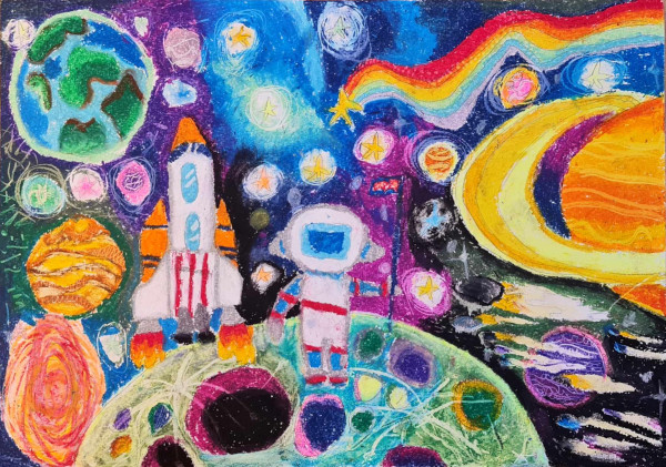 Публикувана отВладимир Добревпреди годинаНов златен медал бе присъден на Вяра Пенчева, 14 г., гр. Габрово от Фондация "Малък зограф" в Световния конкурс за детска рисунка, 2024 г. Всяка година в конкурса участват около 7000 рисунки от над 60 страни по целия свят. Председател на журито бе проф. Анна Бояджиева, преподавател в НХА. През 2024 г. децата имаха възможност да творят върху две теми: „Природните чудеса в моята страна“ и „Артистична експедиция: въображаемо пътешествие“. Вяра избра втората тема и нарисува вълшебна картина, изобразяваща полета на нейното въображение.