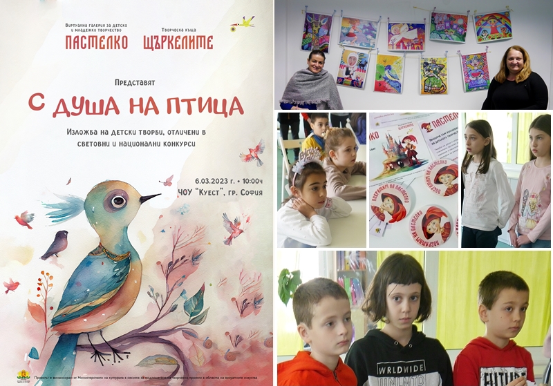 На 6.03.2023 г. Галерия ПАСТЕЛКО гостува на децата от ЧОУ КУЕСТ, гр. София с изложбата "С душа на птица", в която са представени детски и младежки творби на водещите школи по изобразително изкуство в страната.